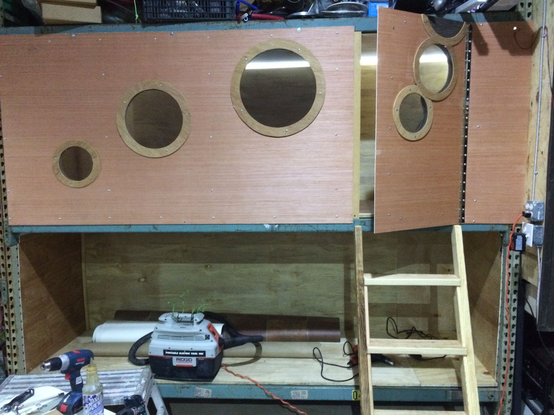 Places to sleep for traveling artists. I constructed these when I was part of Living Art America, which promoted and created Body Painting Festivals in the US. For one festival in Atlanta I had 10-12 artistes staying in my home. I originally created two of these pods in my studio, I do not seem to have any pictures of the second one